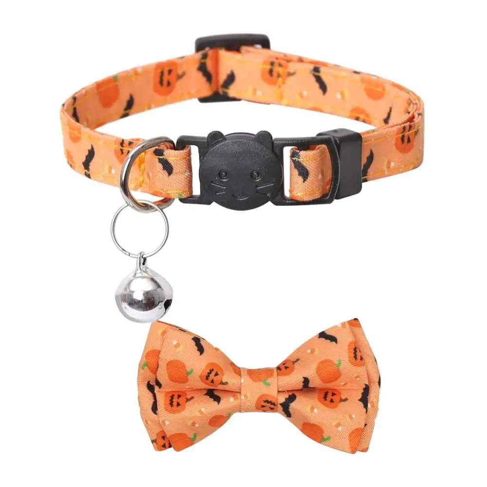 Collare Halloween Papillon Fiocco Campanella Colori Arancione Nero