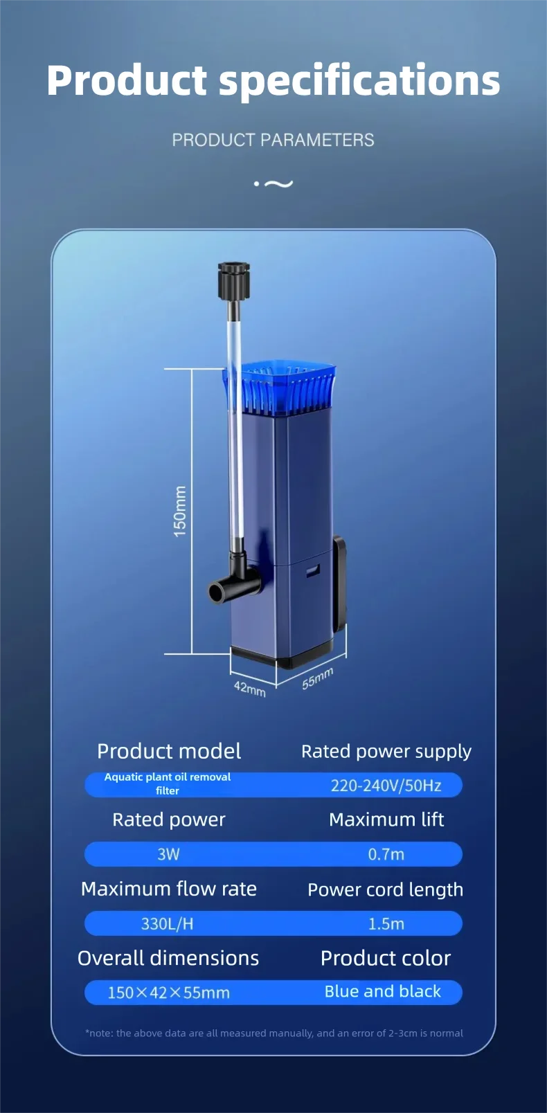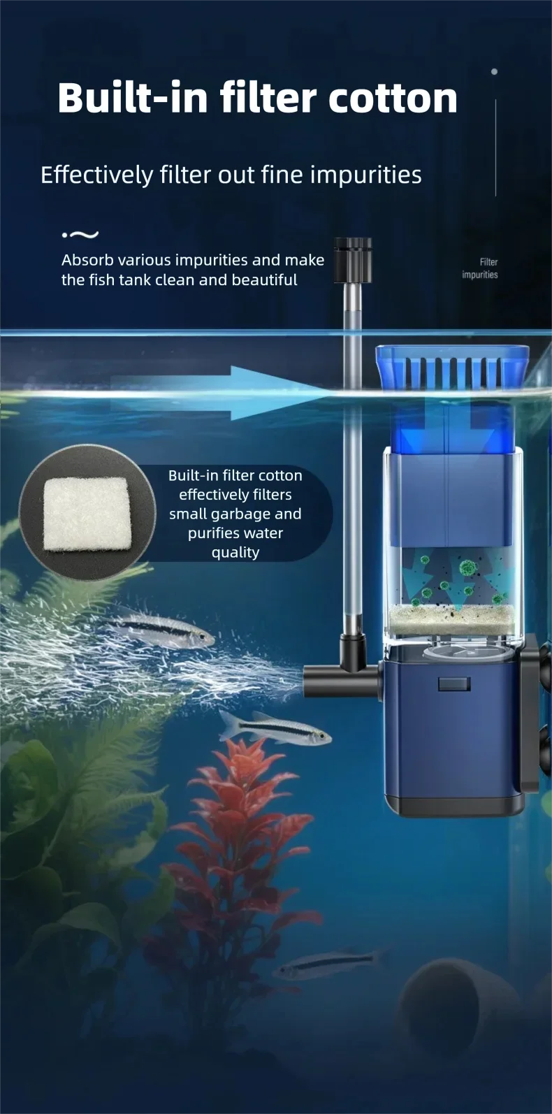 Filtro Pompe Acquario 5 Accessori Inclusi Filtri Cotone Colore Blu