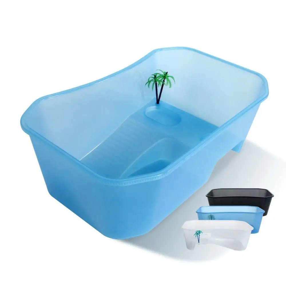 Piccolo Habitat Rettili Tartarughe Gabbia Diversi Colori Azzurro Nero Bianco Palma Interna