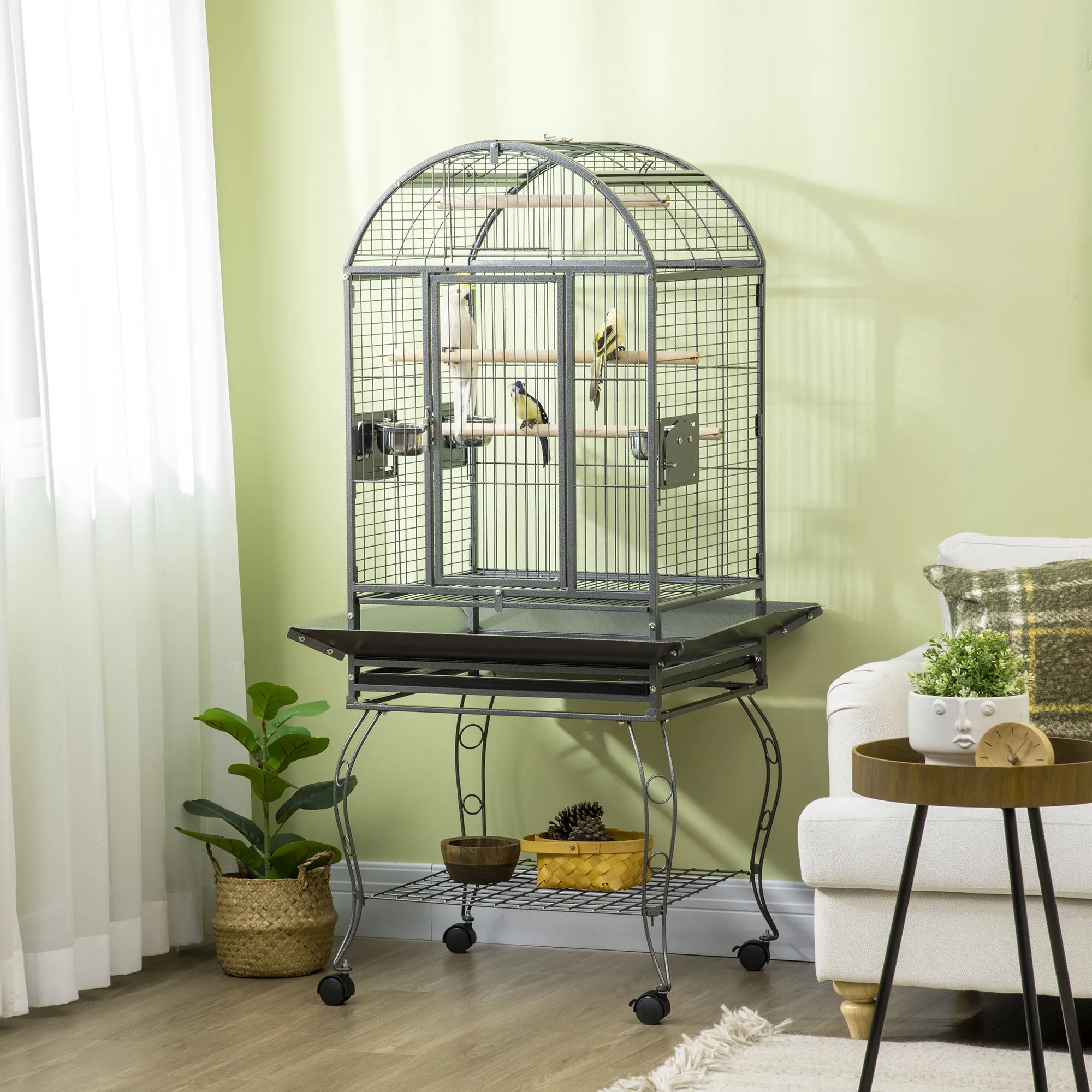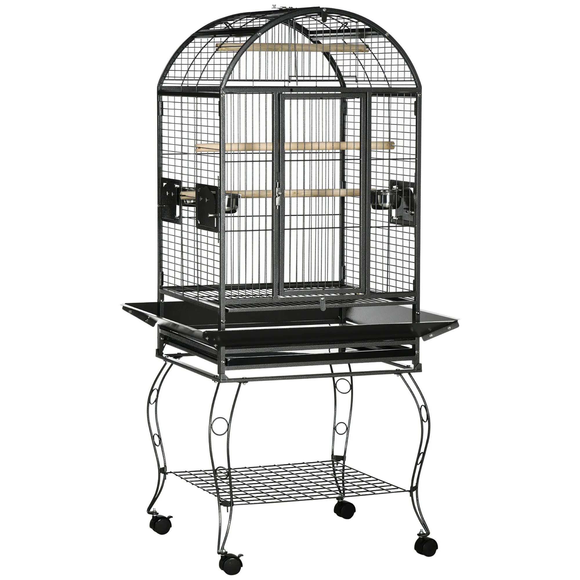 Gabbia Uccelli 2 Porte Ante Vassoio Ruote Acciaio Legno Supporto Sostegno