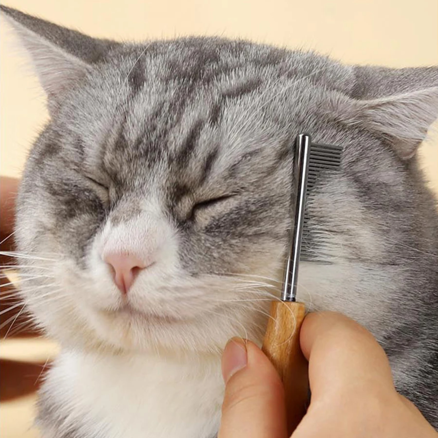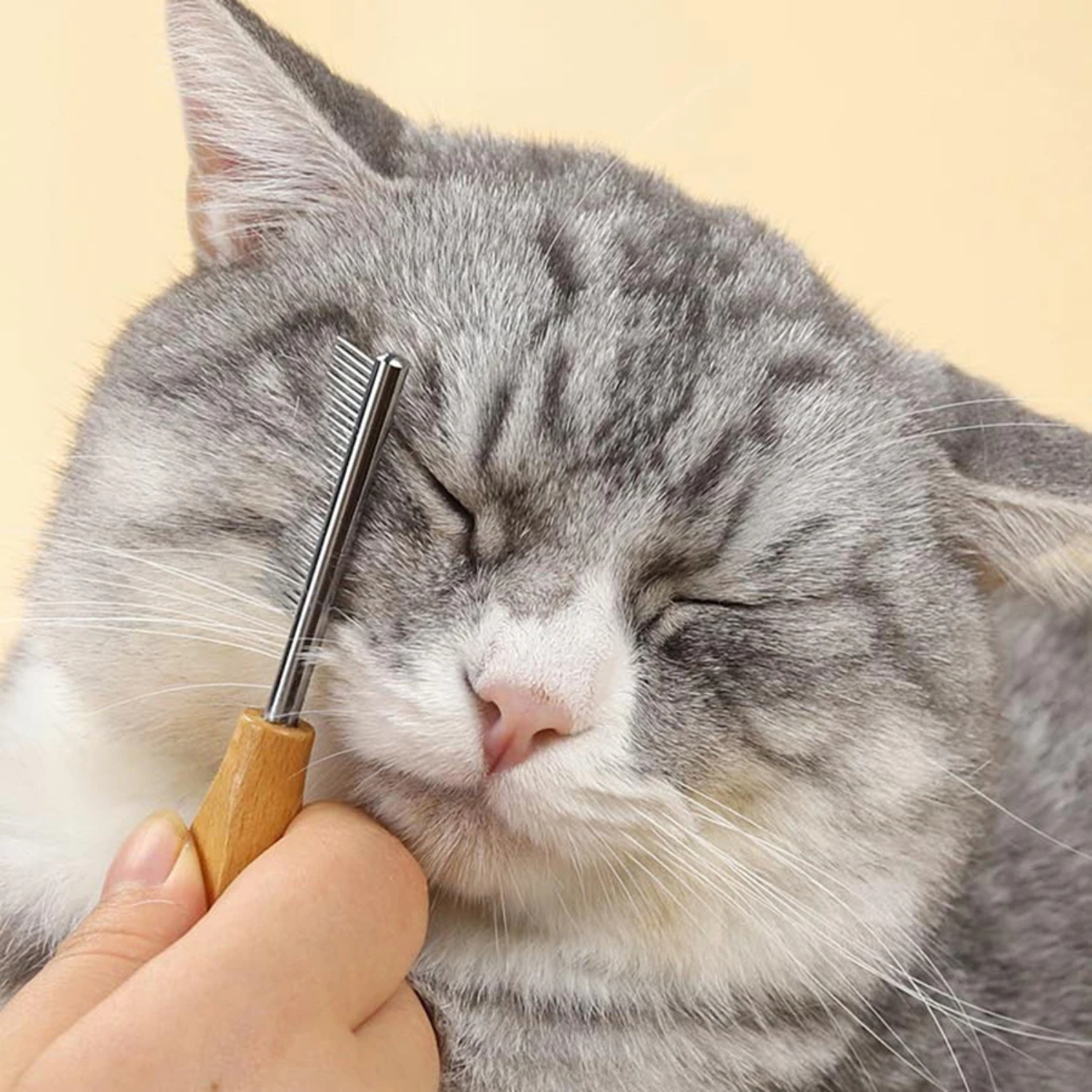 Igiene Animali Spazzola Peli Legno Acciaio Inossidabile Pettine Denti Stretti