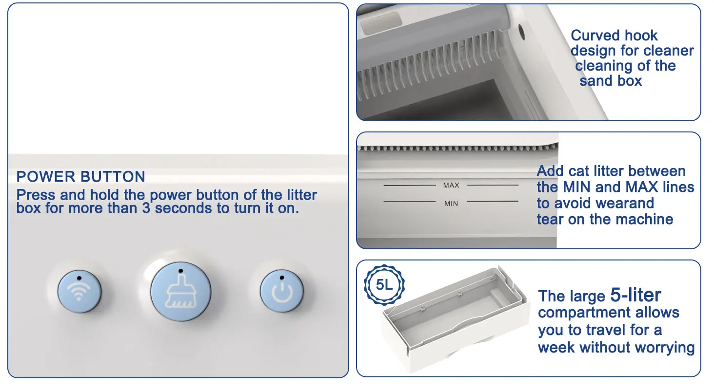 Lettiera Automatico Gatti Intelligente Pulizia Controllo WiFi Toilette