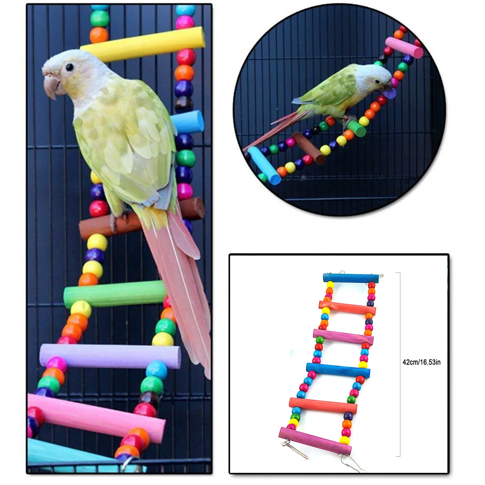Giochi Uccelli Multicolore Metallo Legno Scala Gabbia Volatili 42cm