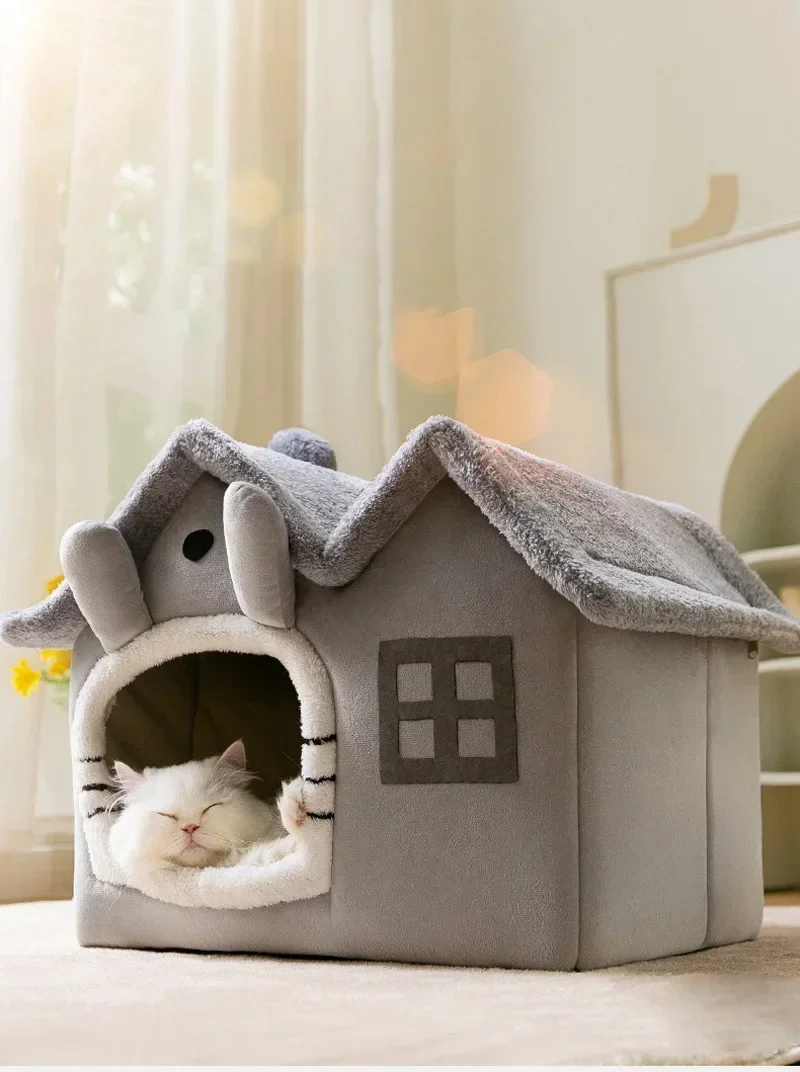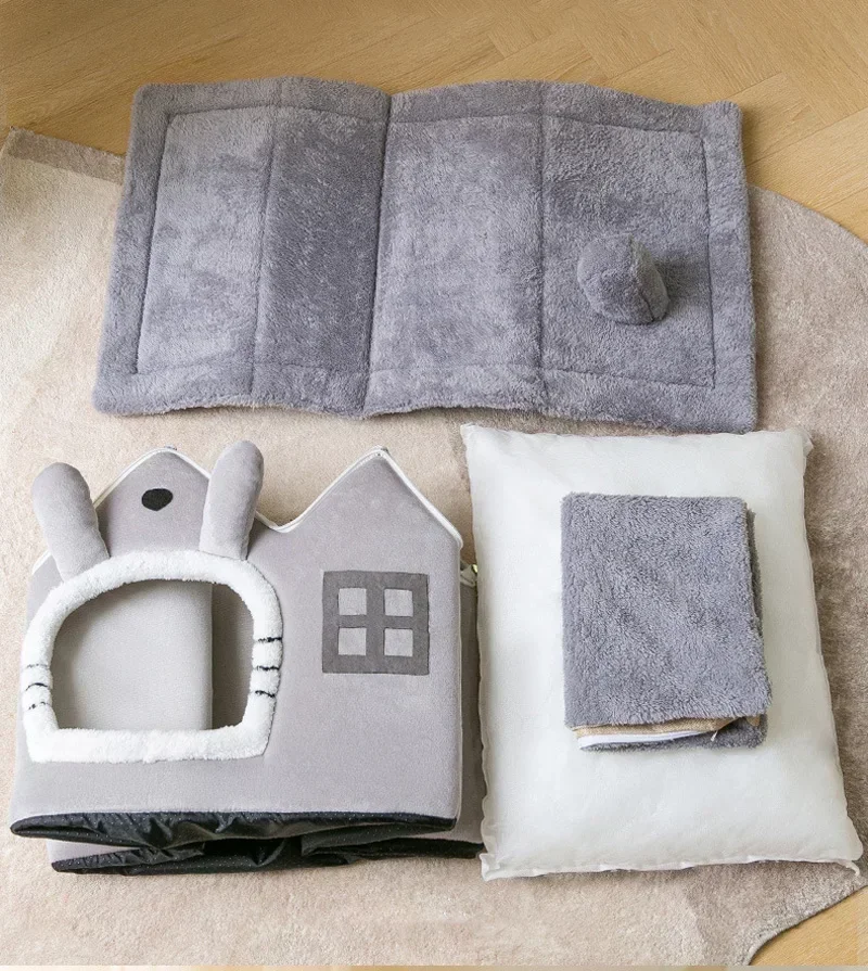 Cuccia Animali Domestici Pieghevole Grigio Morbida Modello Casa